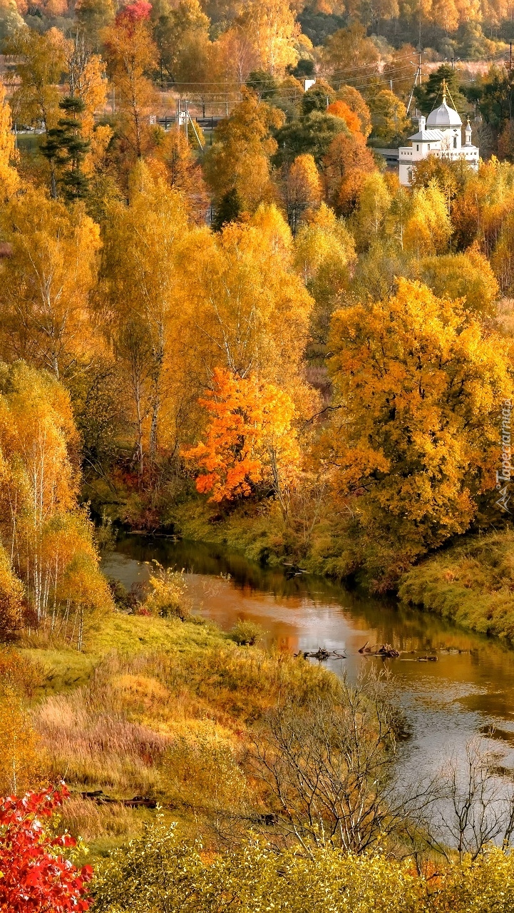 Edytor tapety: Jesienne drzewa nad rzeką Istra