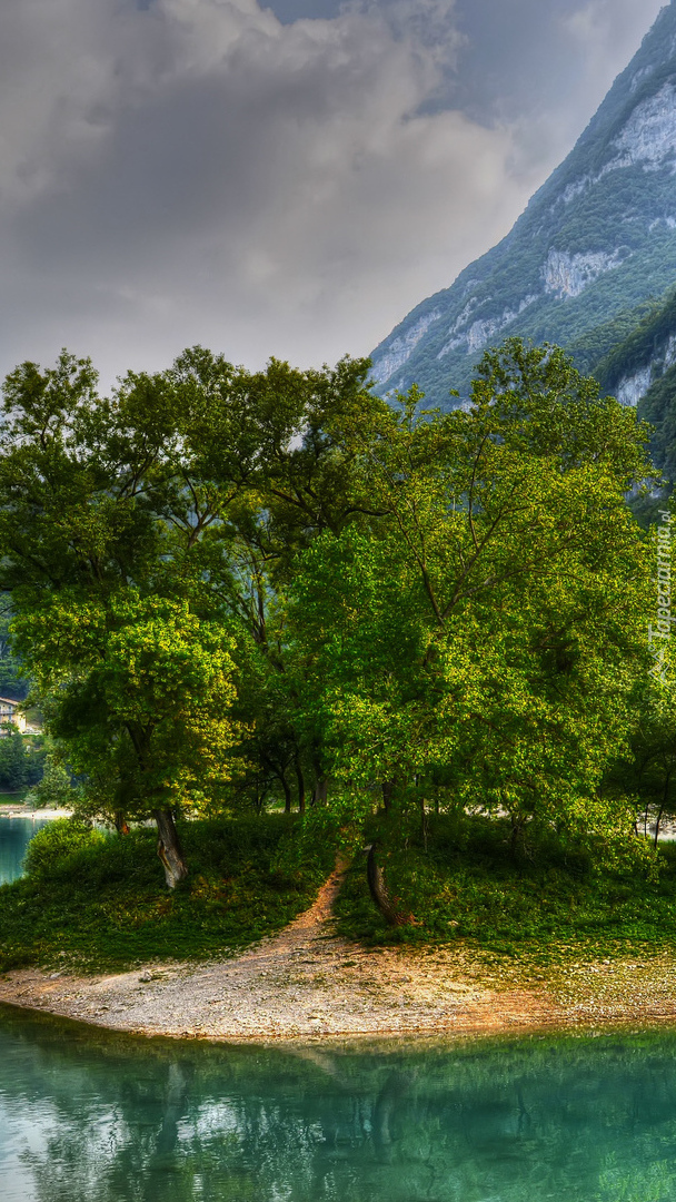 Edytor tapety: Wysepka z drzewami na jeziorze