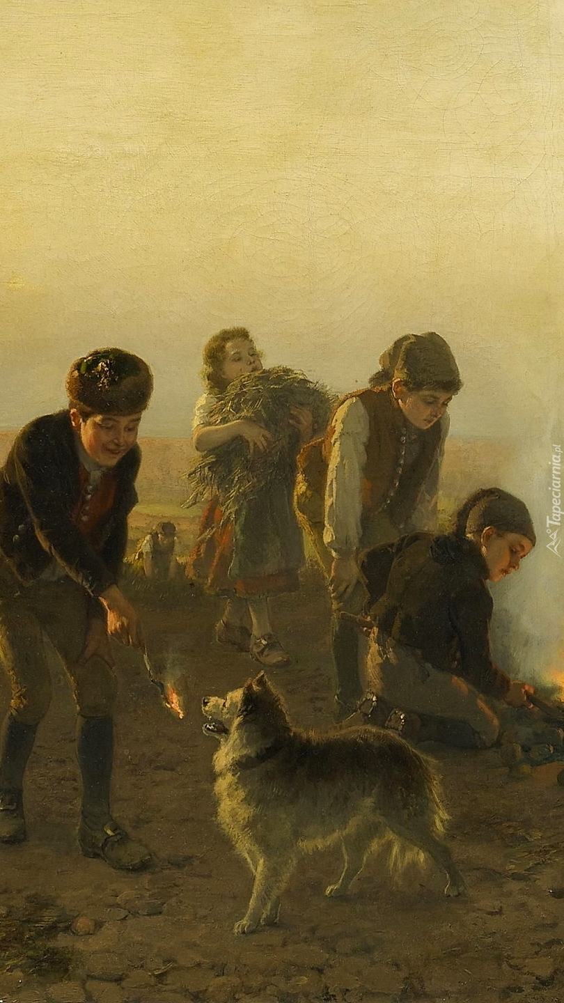 Edytor tapety: Dzieci przy ognisku