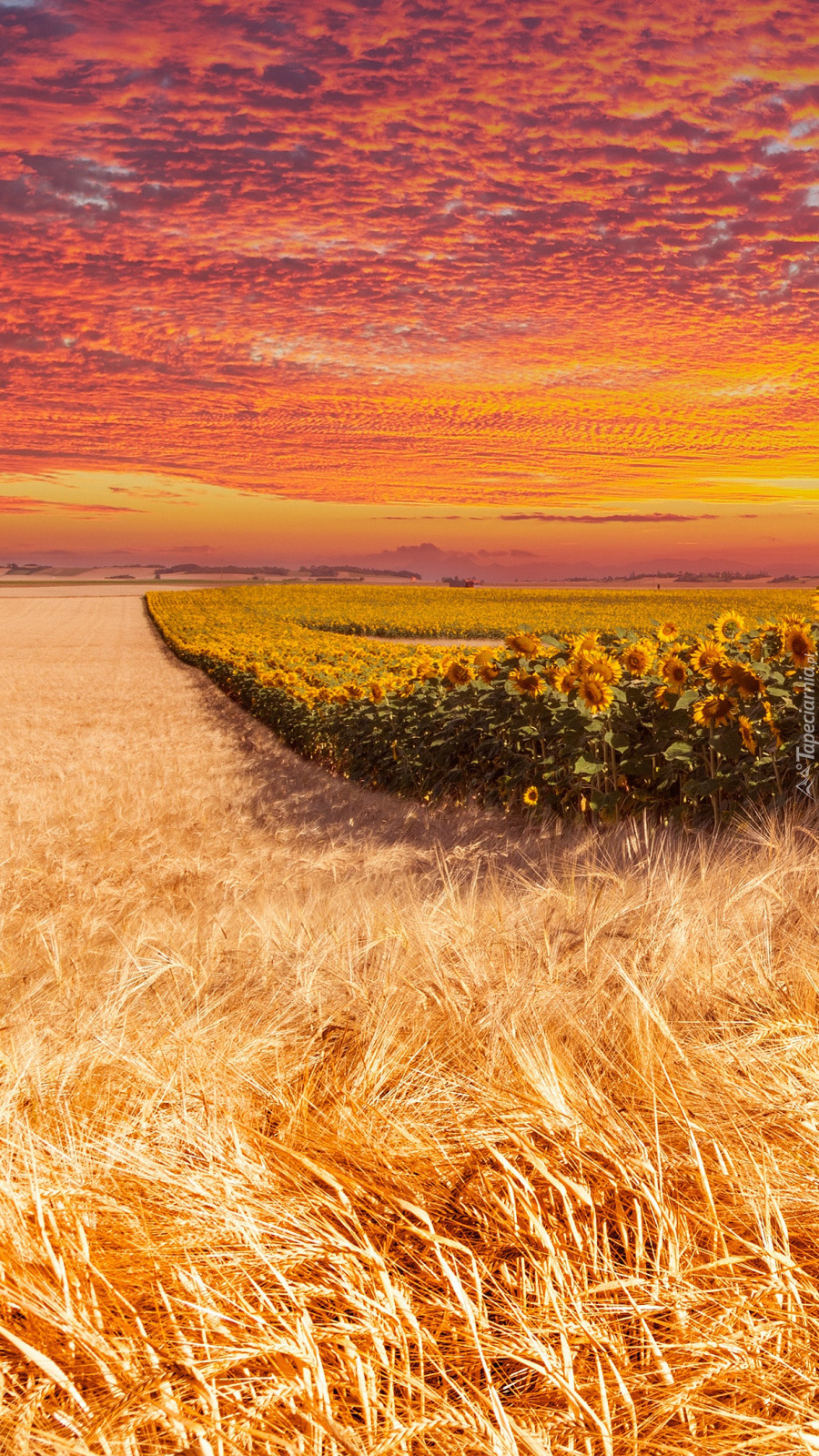 Edytor tapety: Słoneczniki i zboże na polu