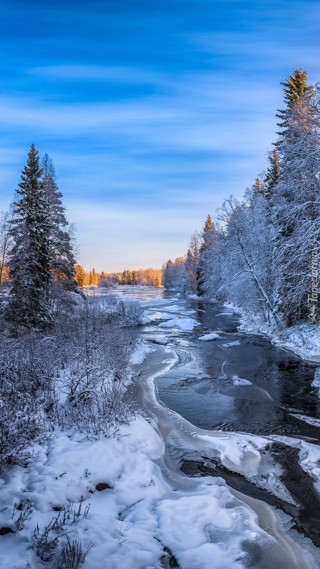 Edytor tapety: Ośnieżone drzewa nad rzeką