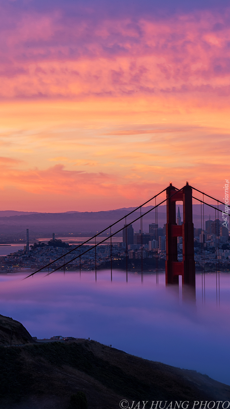 Edytor tapety: Wschód słońca nad mostem Golden Gate