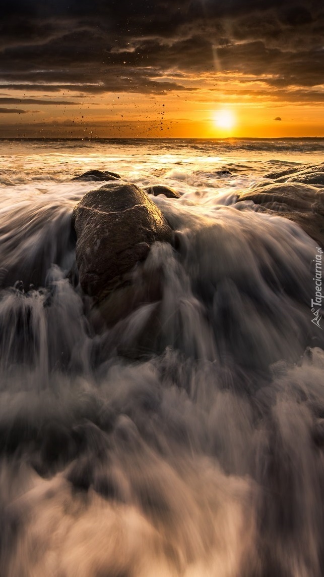 Edytor tapety: Zachód słońca nad niespokojnym morzem