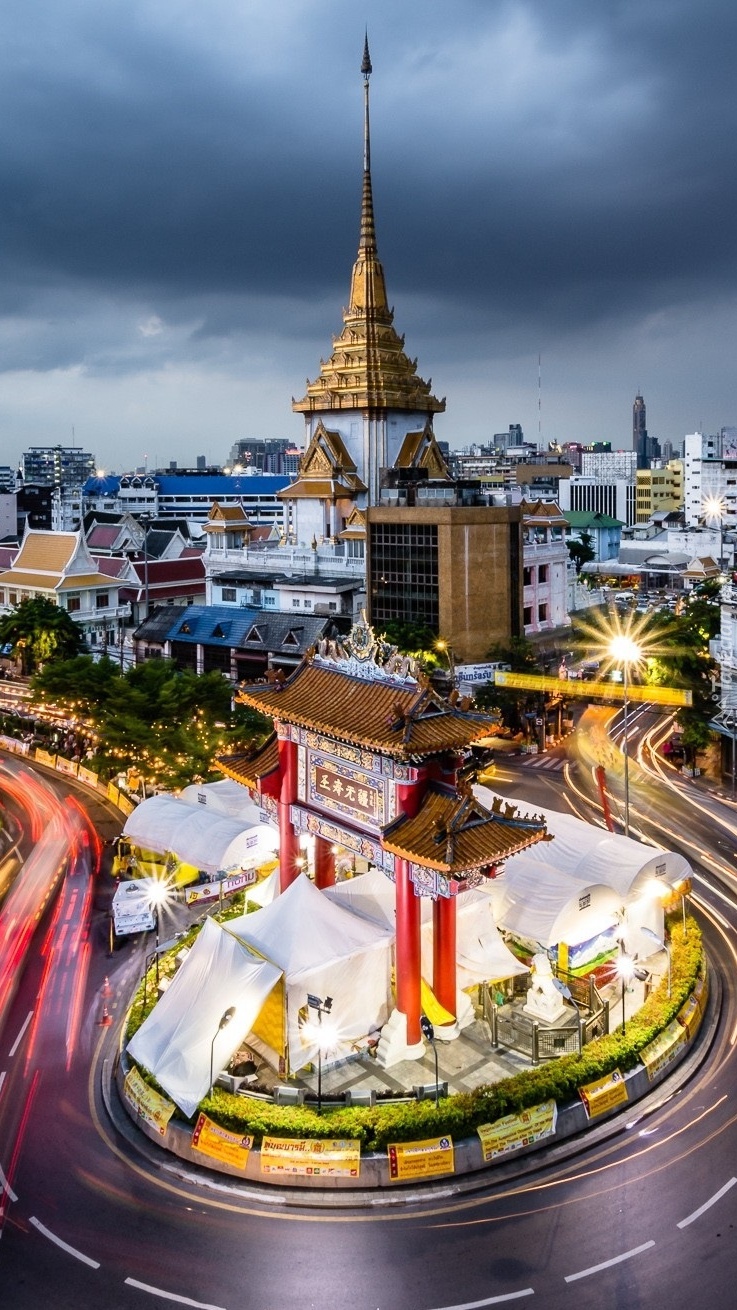 Edytor tapety: Oświetlona ulica w Bangkoku
