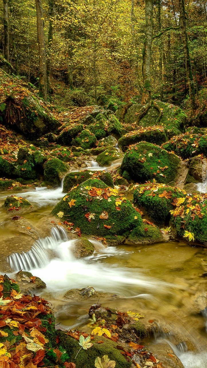 Edytor tapety: Omszałe kamienie w leśnej rzece