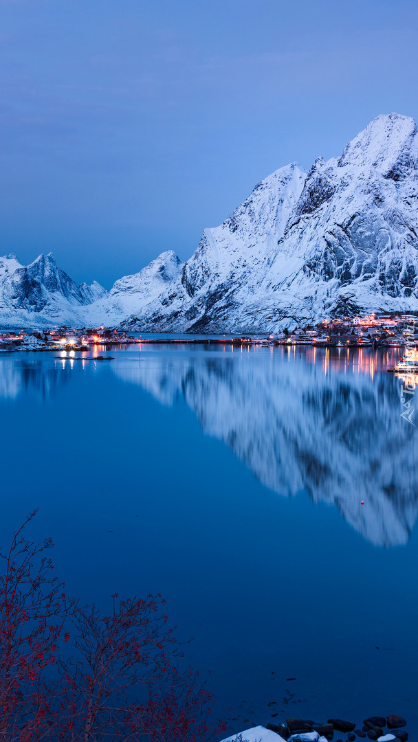 Edytor tapety: Ośnieżone góry na wyspie Moskenesoya