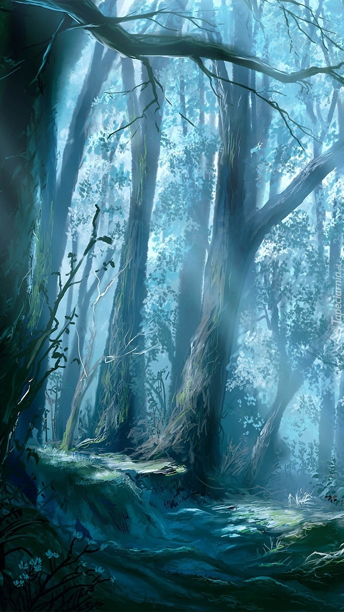 Edytor tapety: Drzewa w gęstym lesie