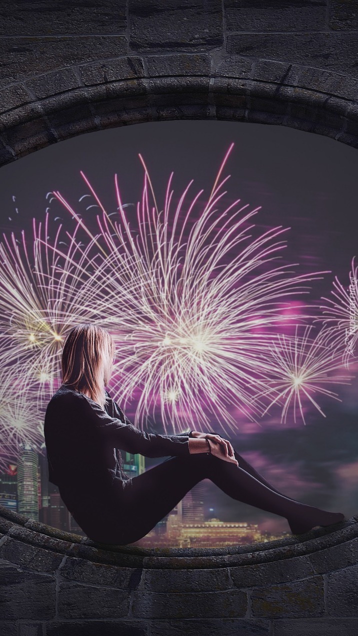 Edytor tapety: Kobieta oglądająca fajerwerki