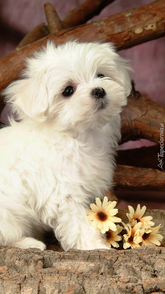 Edytor tapety: Mały biały szczeniak maltańczyka