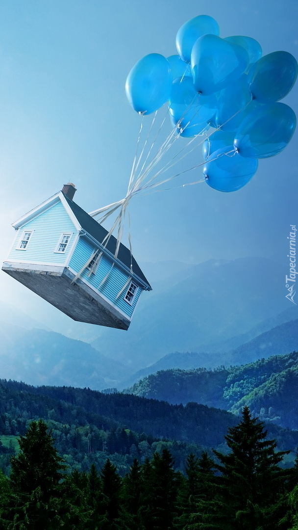 Edytor tapety: Balony unoszące dom