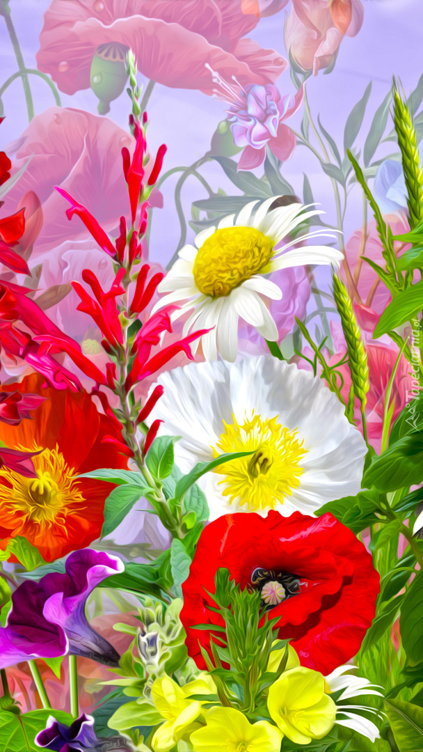 Edytor tapety: Grafika z kolorowymi kwiatami