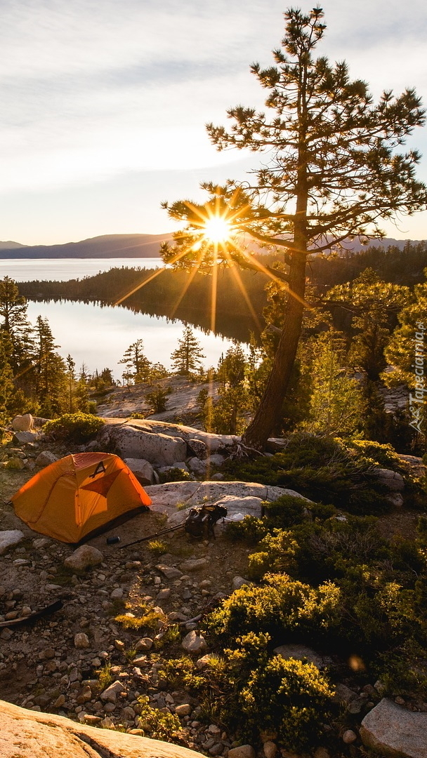 Edytor tapety: Namiot na skałach