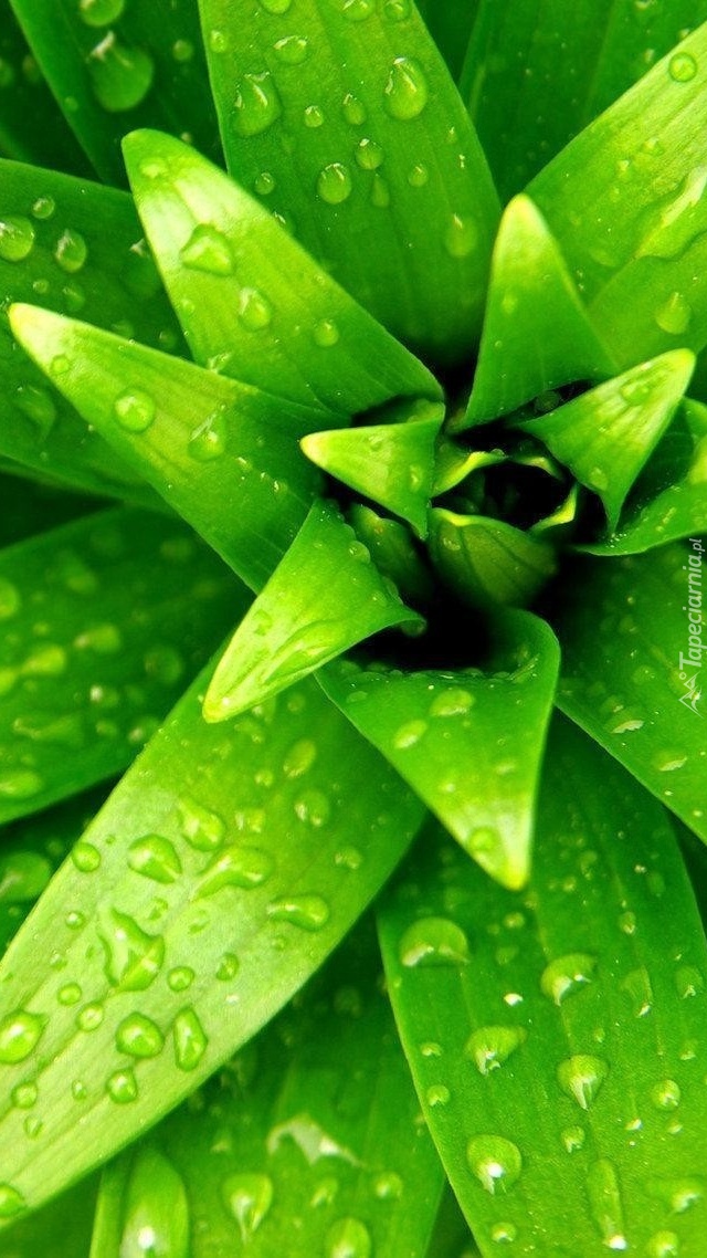 Edytor tapety: Krople deszczu na liściach
