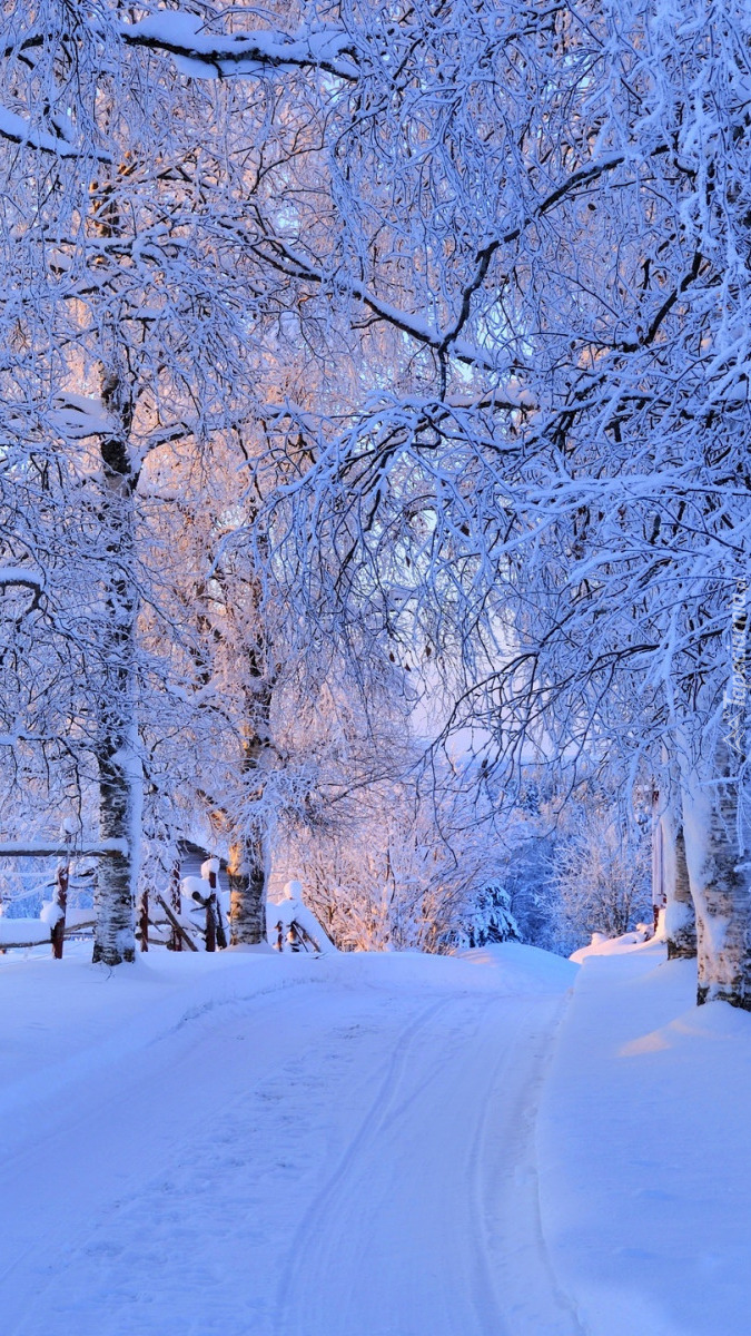 Edytor tapety: Ośnieżone drzewa przy drodze