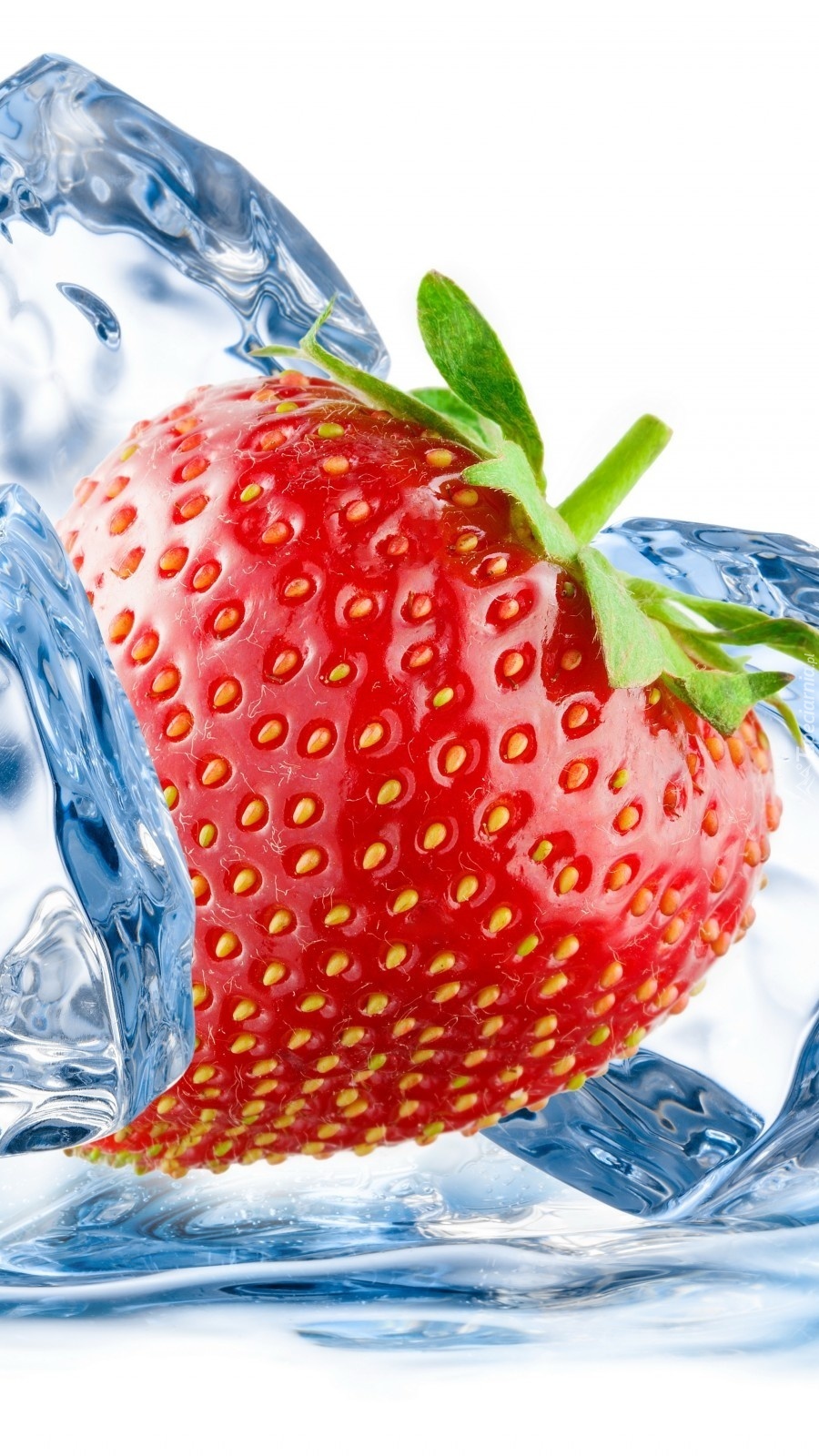 Edytor tapety: Schłodzona truskawka w kostkach lodu