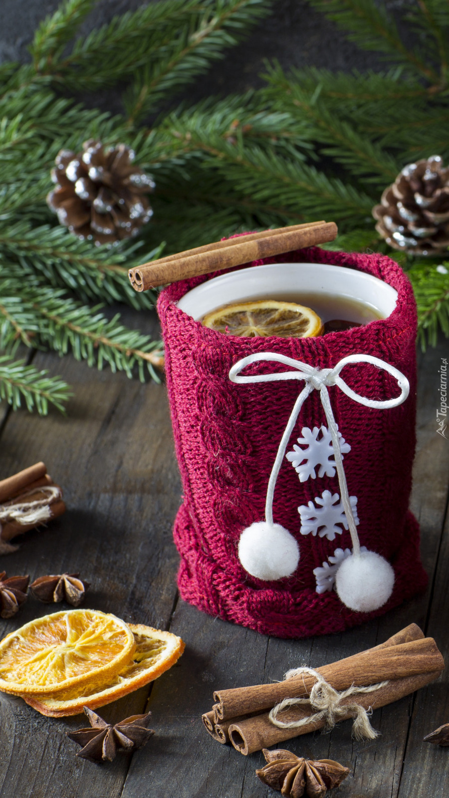Edytor tapety: Kubek herbaty w sweterku