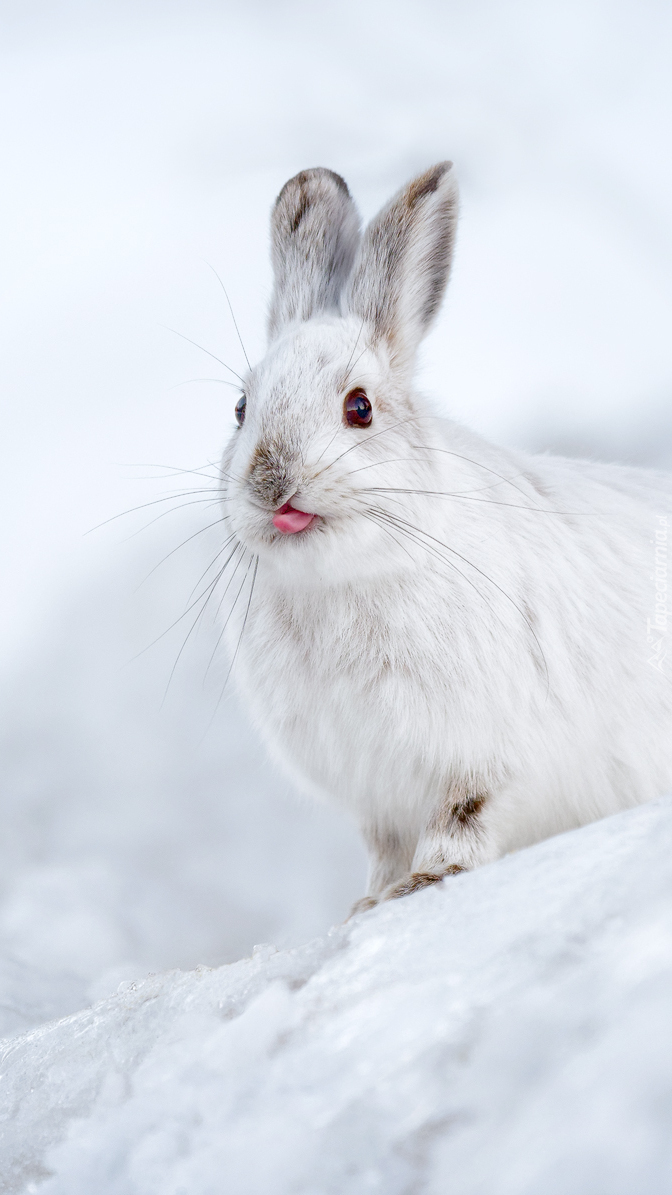 Edytor tapety: Biały zając na śniegu