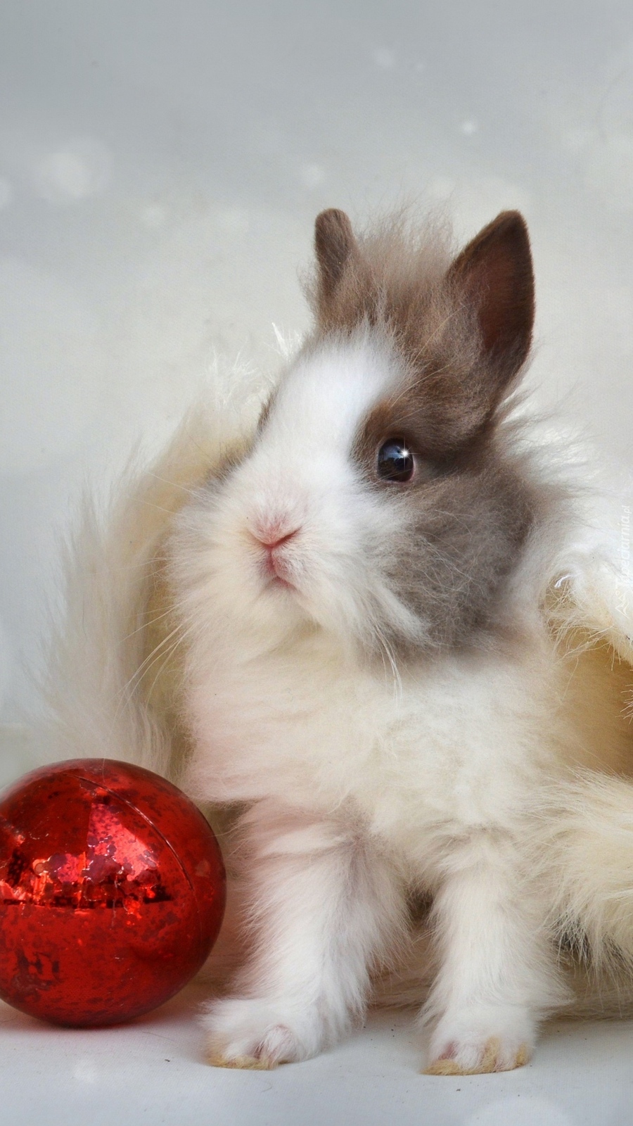 Edytor tapety: Królik obok czerwonej bombki