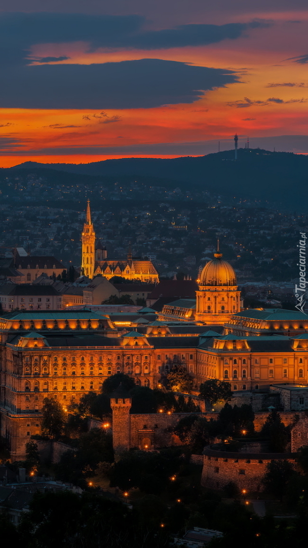 Edytor tapety: Oświetlony Zamek Królewski w Budapeszcie