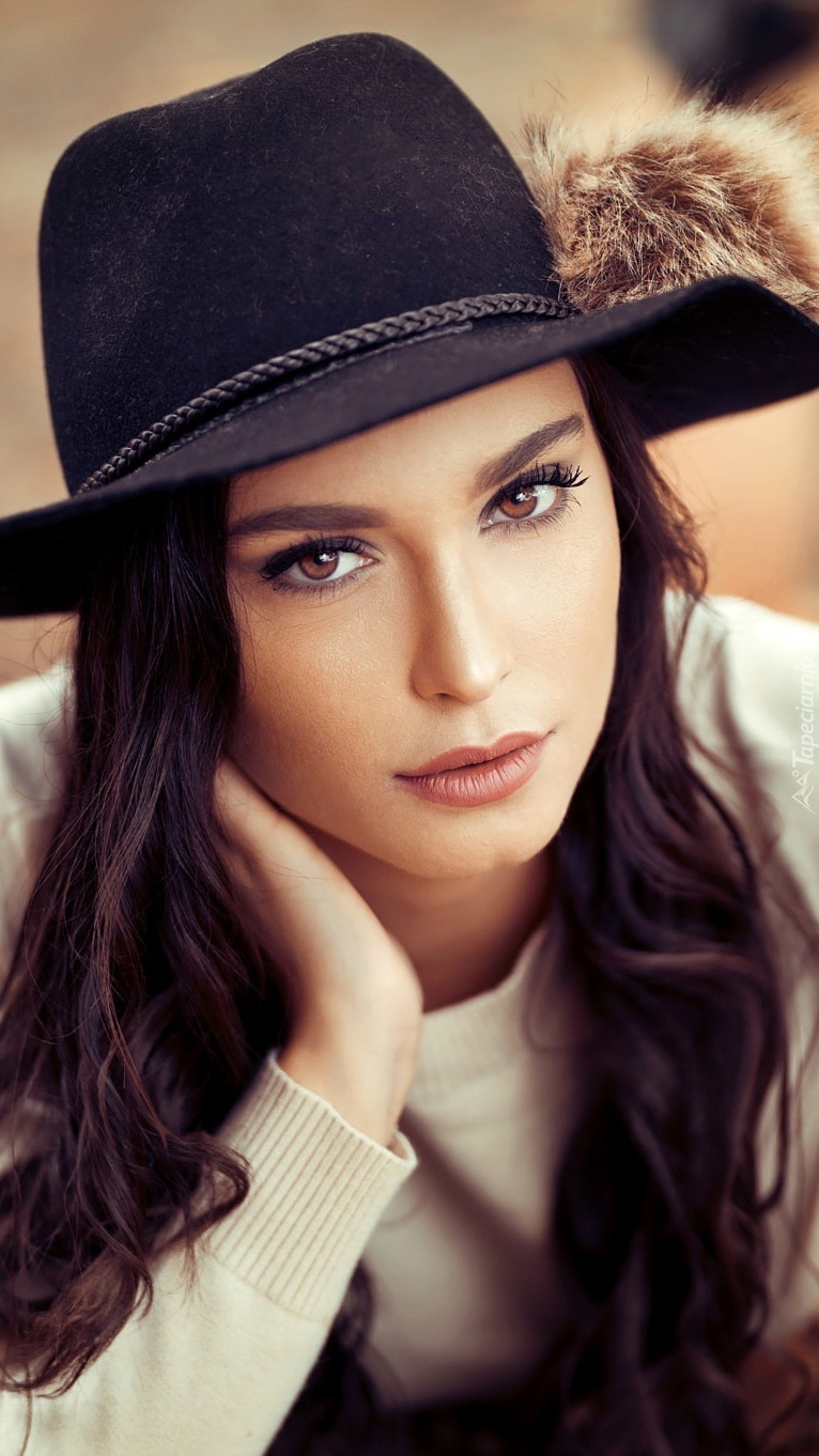 Edytor tapety: Szatynka w kapeluszu