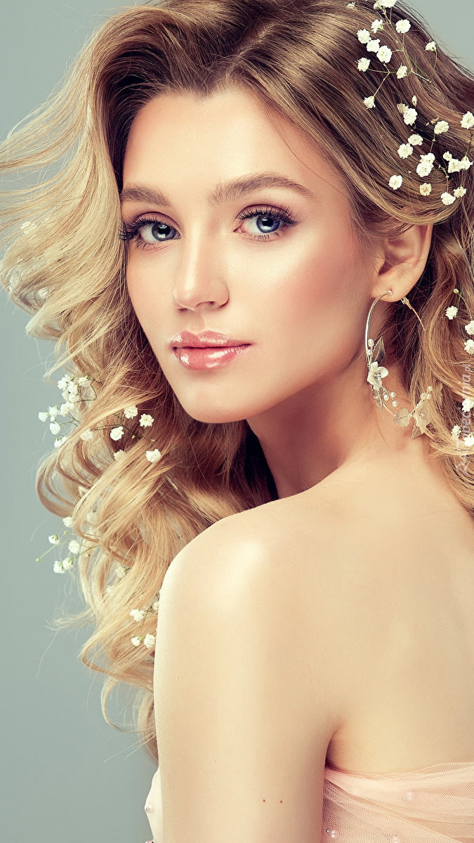 Edytor tapety: Kobieta z białymi kwiatkami we włosach