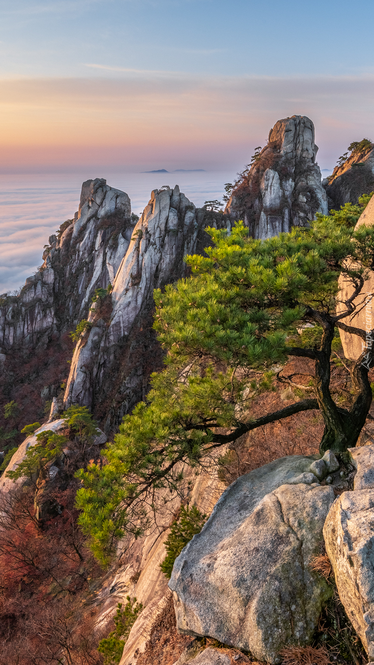 Edytor tapety: Sosna na skałach