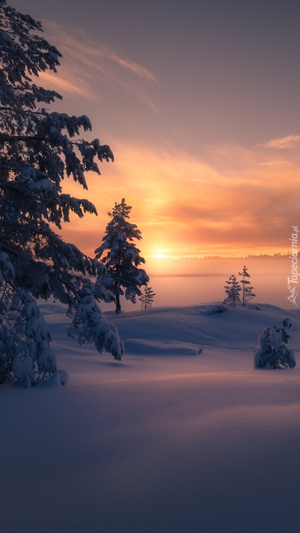 Edytor tapety: Wschód słońca nad drzewami