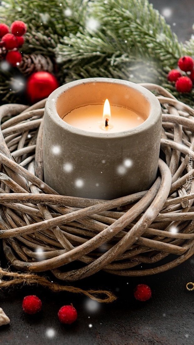 Edytor tapety: Świeczka w wiklinowym wianku