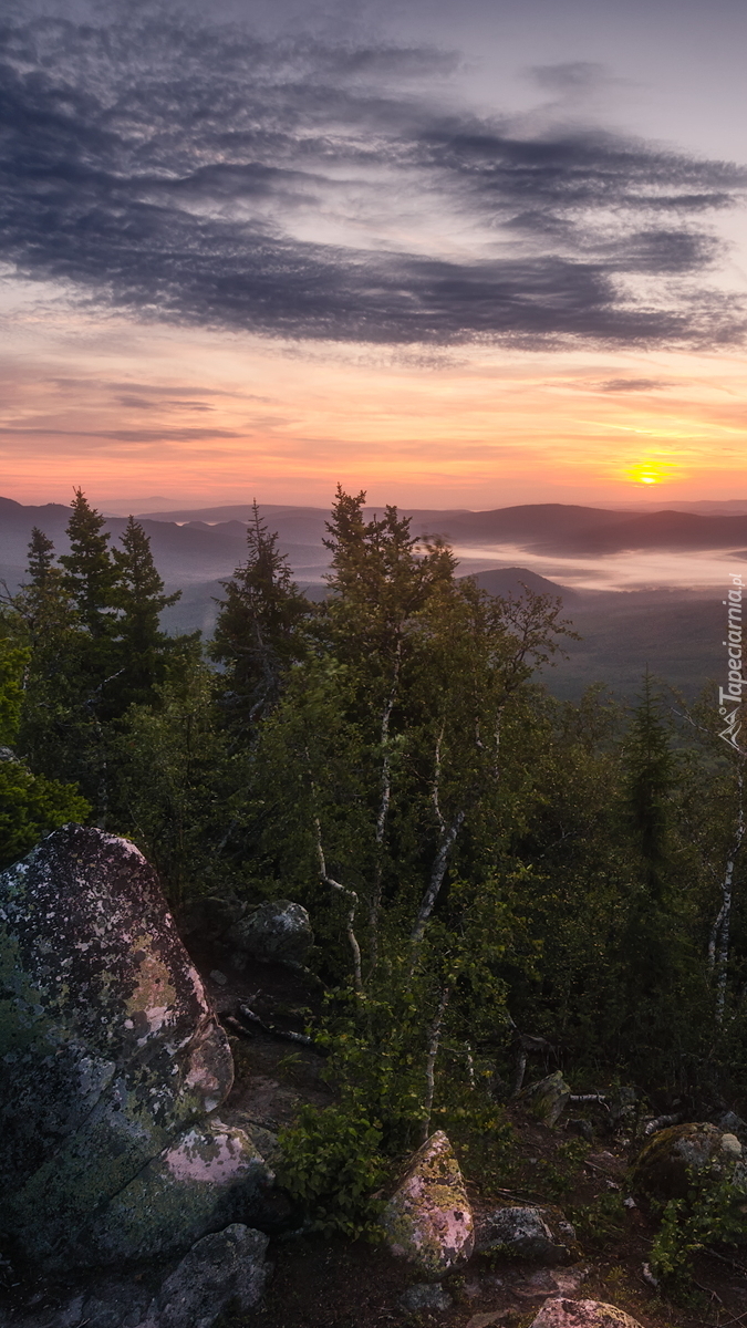 Edytor tapety: Drzewa wśród skał na wzgórzu