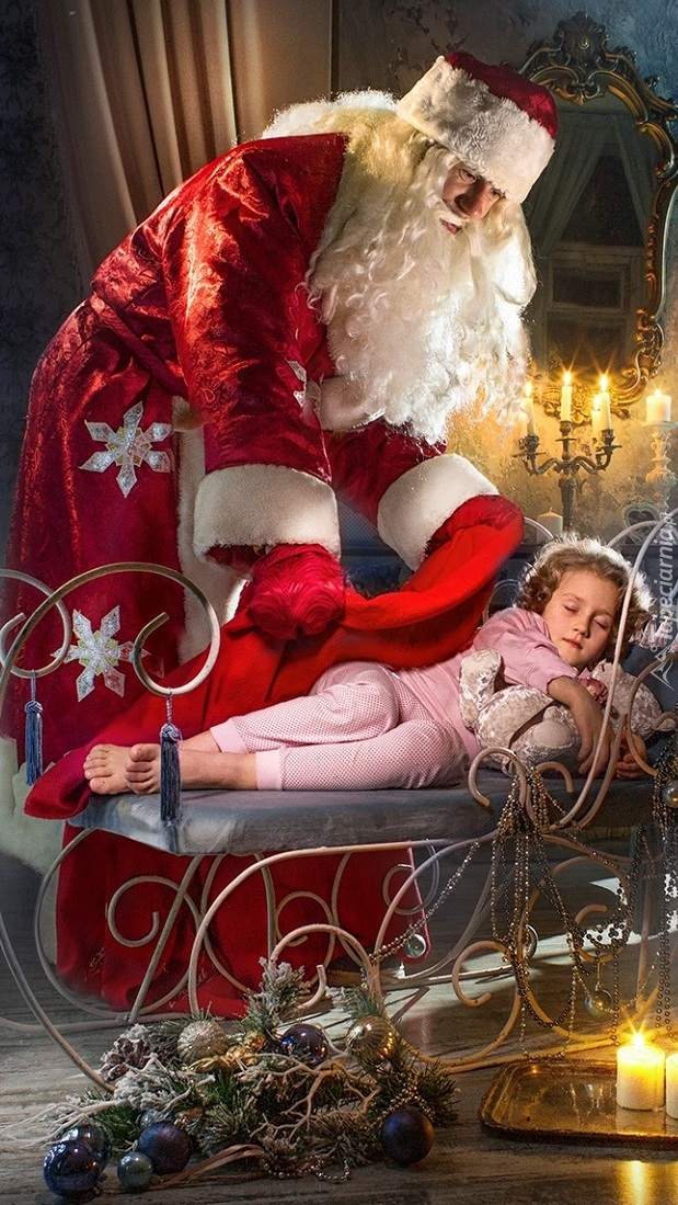 Edytor tapety: Mikołaj przy śpiącej dziewczynce