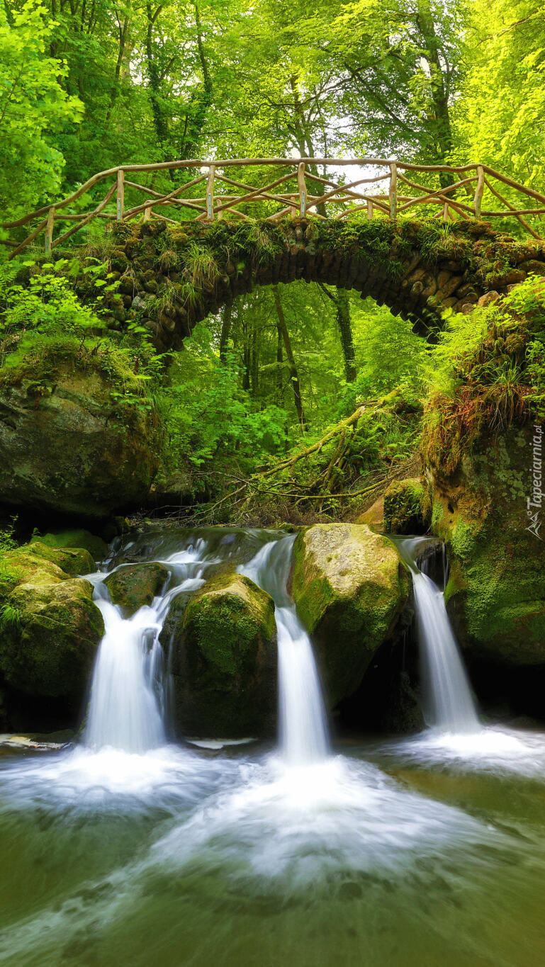 Edytor tapety: Most nad wodospadem Schiessentumpel w Luksemburgu