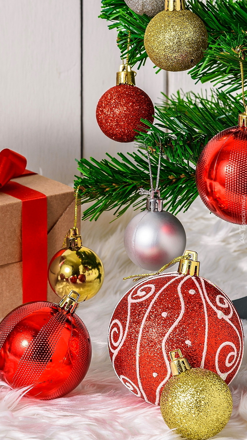 Edytor tapety: Kolorowe bombki na gałązkach