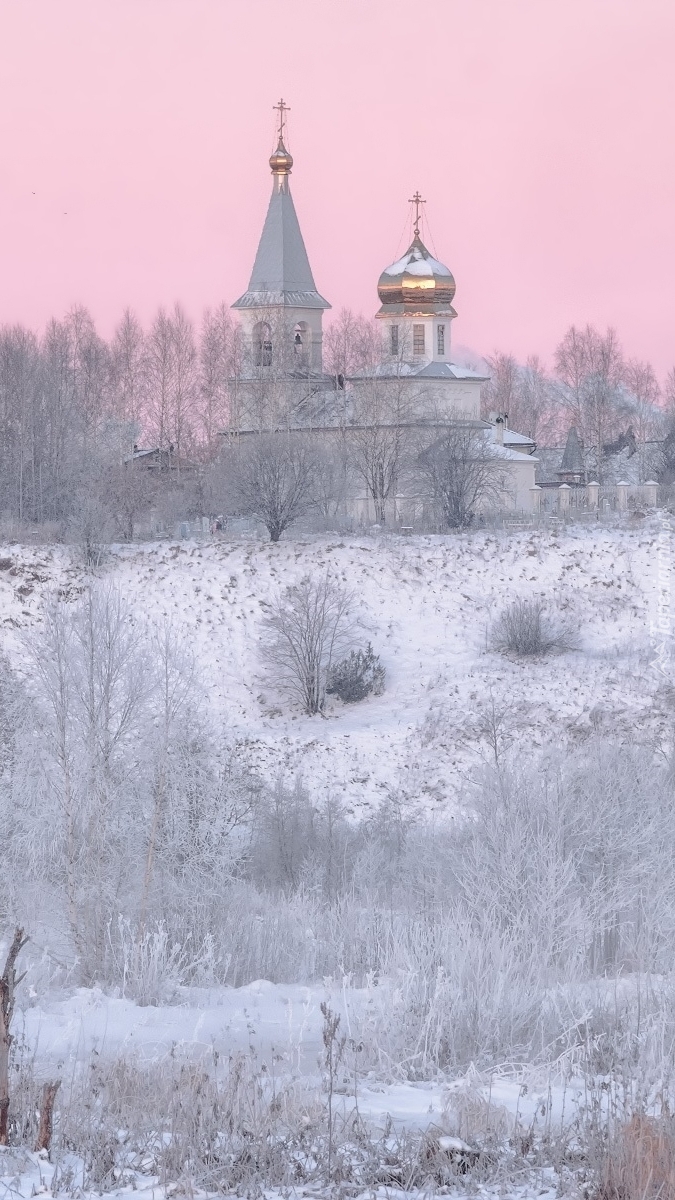 Edytor tapety: Cerkiew wśród oszronionych drzew