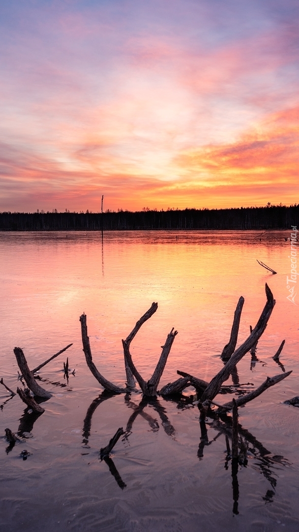 Edytor tapety: Suche konary zanurzone w jeziorze
