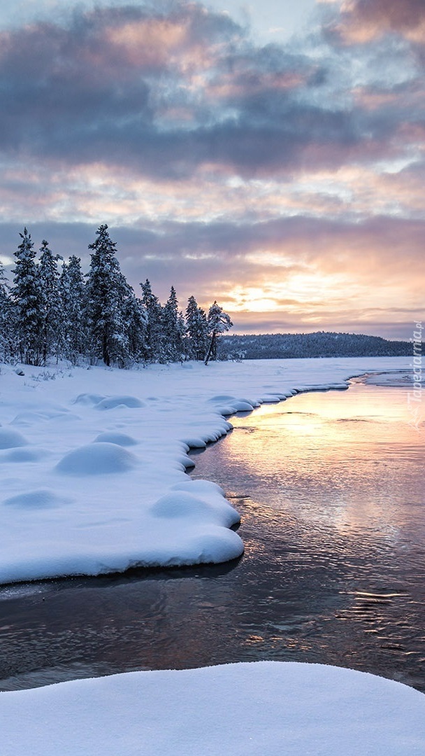 Edytor tapety: Wschód słońca i chmury nad rzeką