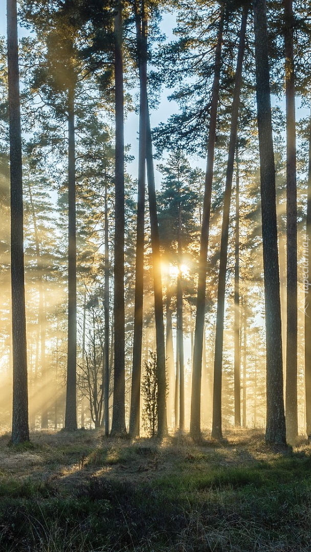 Edytor tapety: Las w słonecznych promieniach