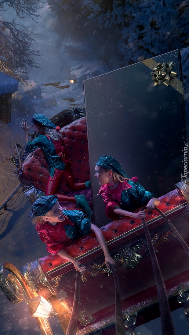 Edytor tapety: Dzieci w saniach Mikołaja
