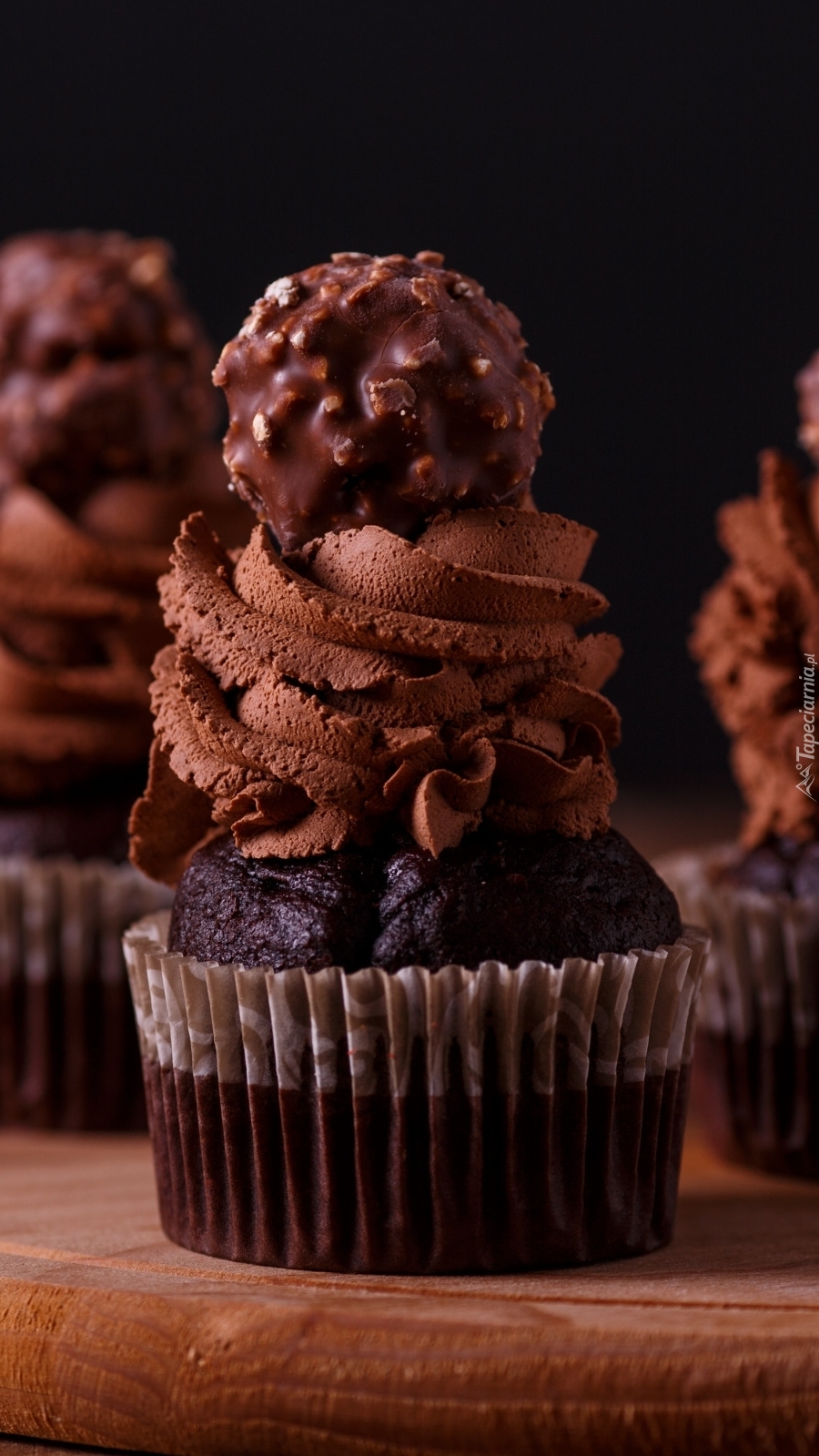 Edytor tapety: Czekoladowa babeczka z kremem i pralinką