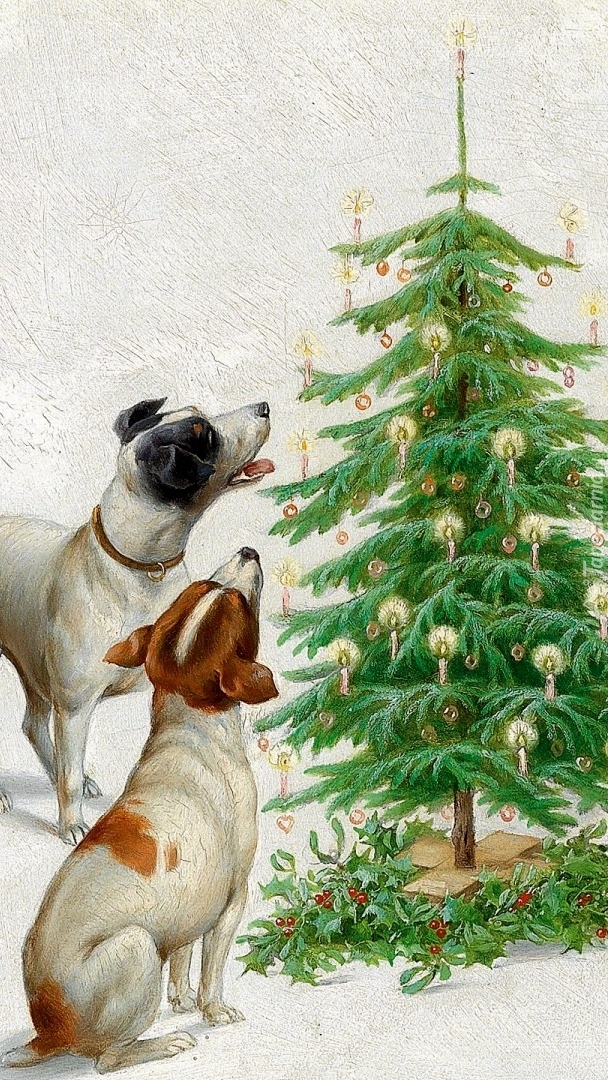 Edytor tapety: Dwa psy przy choince