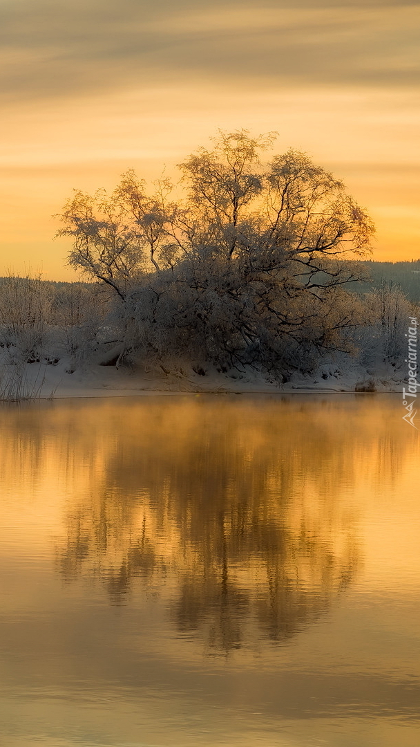 Edytor tapety: Oszronione drzewo nad jeziorem