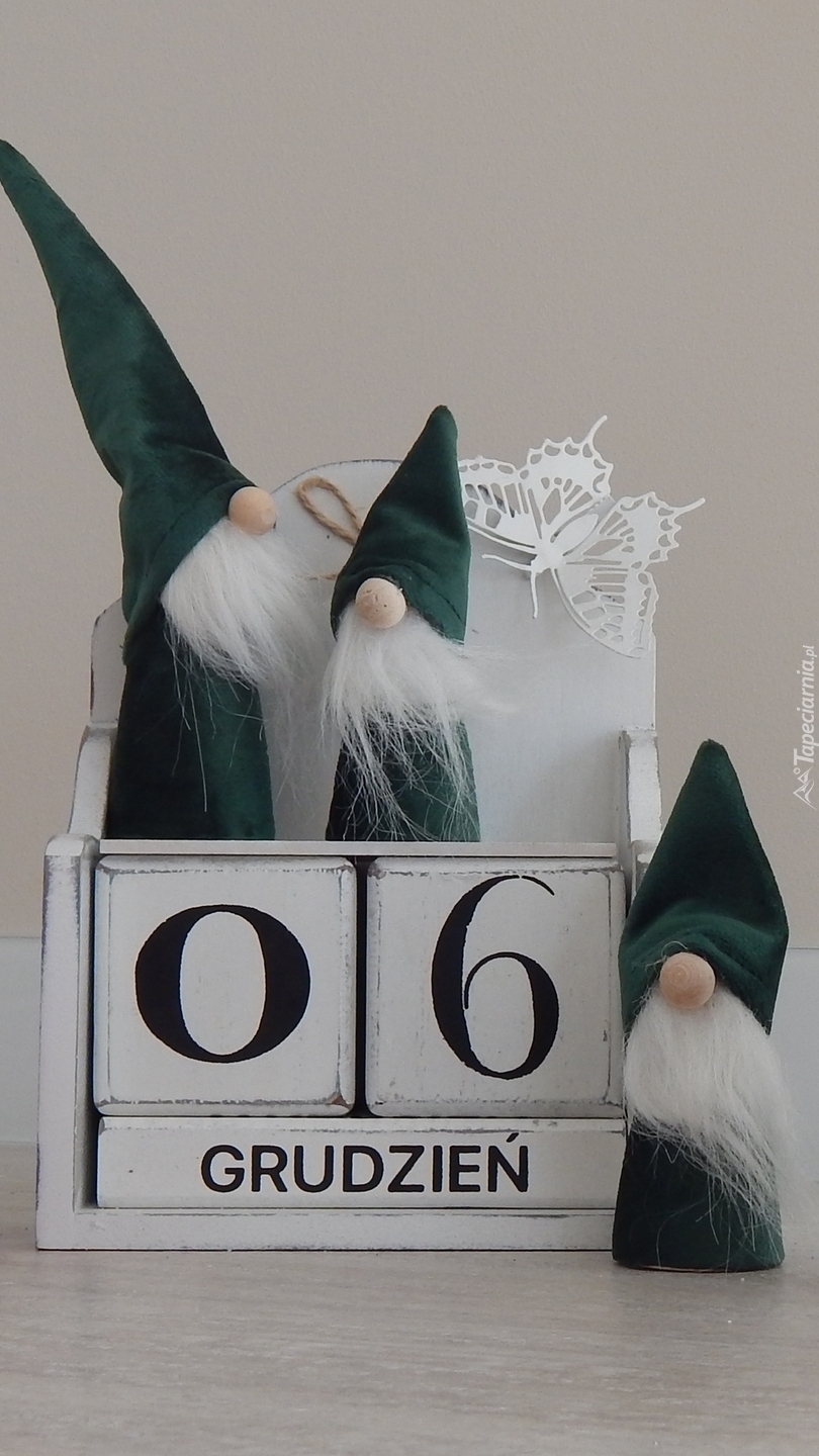 Edytor tapety: Trzy Mikołaje przy pudełku z datą