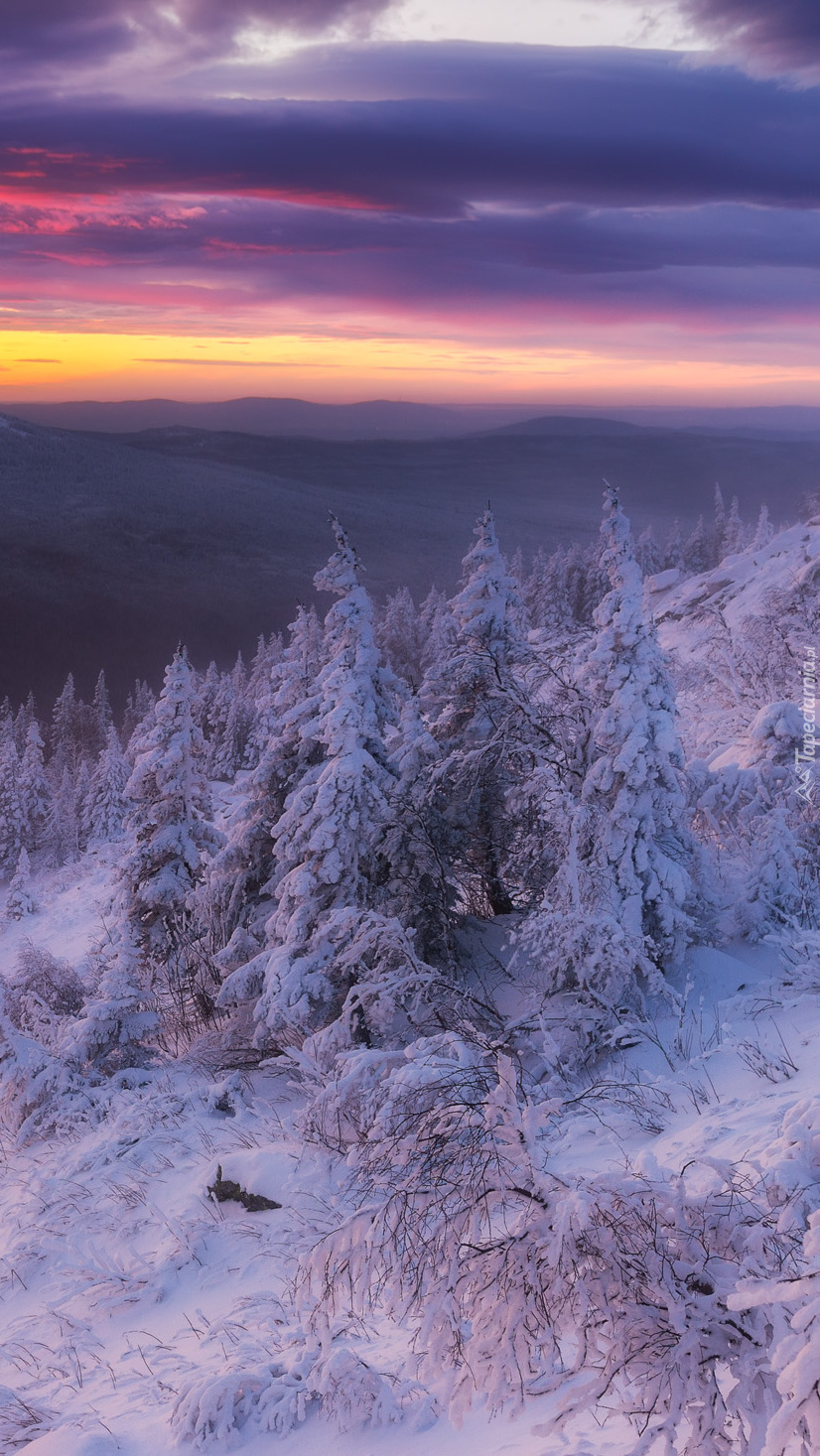Edytor tapety: Ośnieżone świerki na wzgórzu