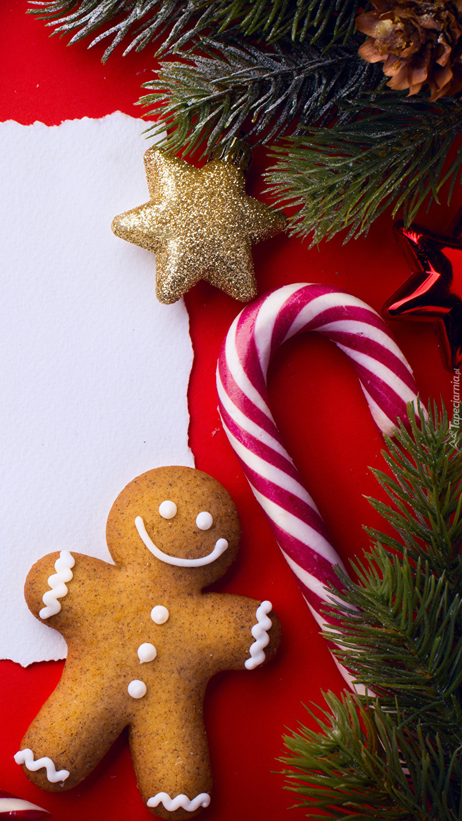 Edytor tapety: Piernikowy ludzik obok lizaka i gałązek