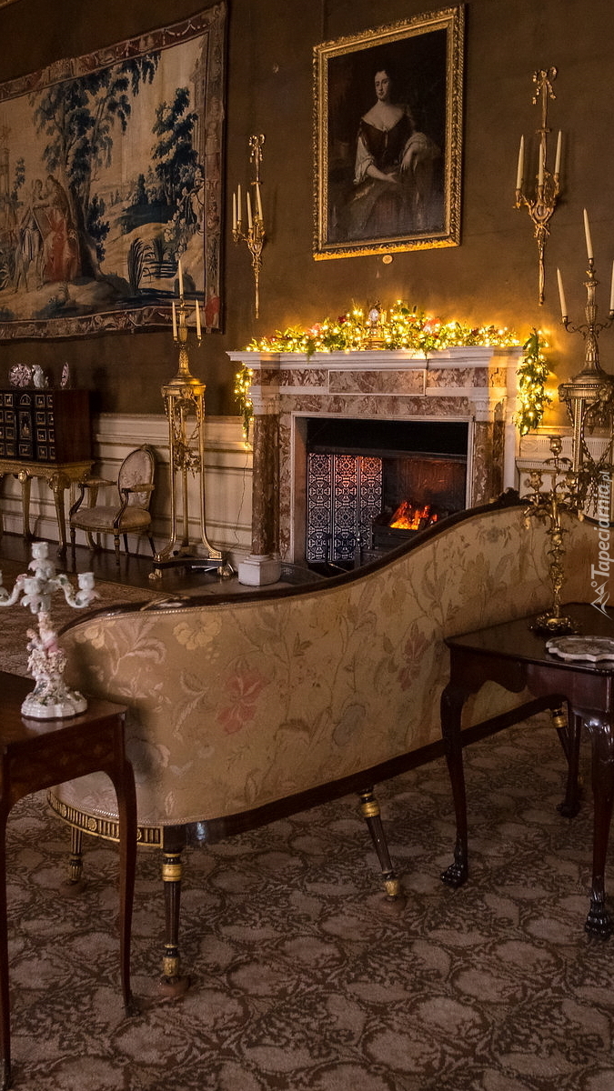 Edytor tapety: Kanapa przy kominku w zamku Chirk