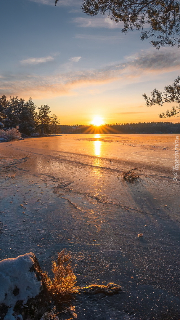 Edytor tapety: Zachód słońca nad zamarzniętym jeziorem