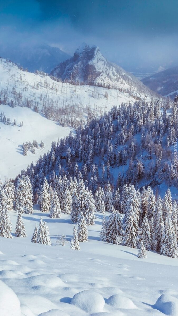Edytor tapety: Zimowy krajobraz w górach