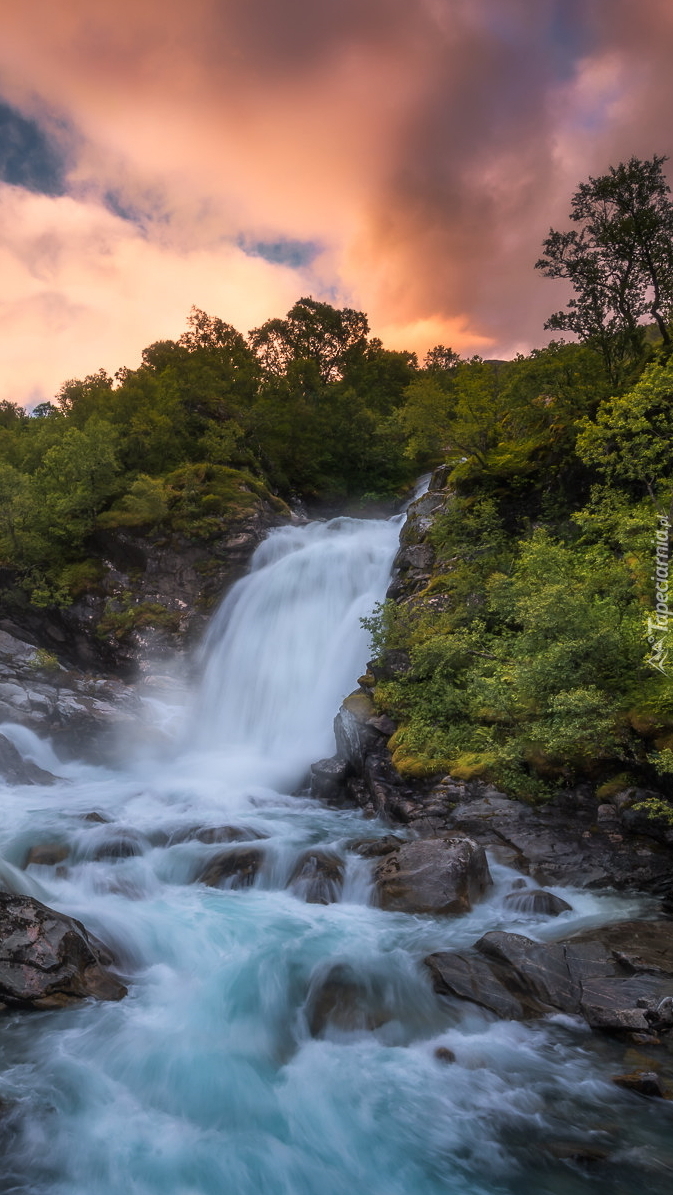 Edytor tapety: Mały wodospad pośród krzewów