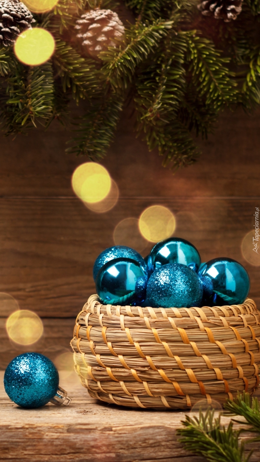 Edytor tapety: Koszyk z niebieskimi bombkami