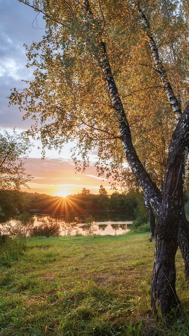 Edytor tapety: Brzozy nad jeziorem