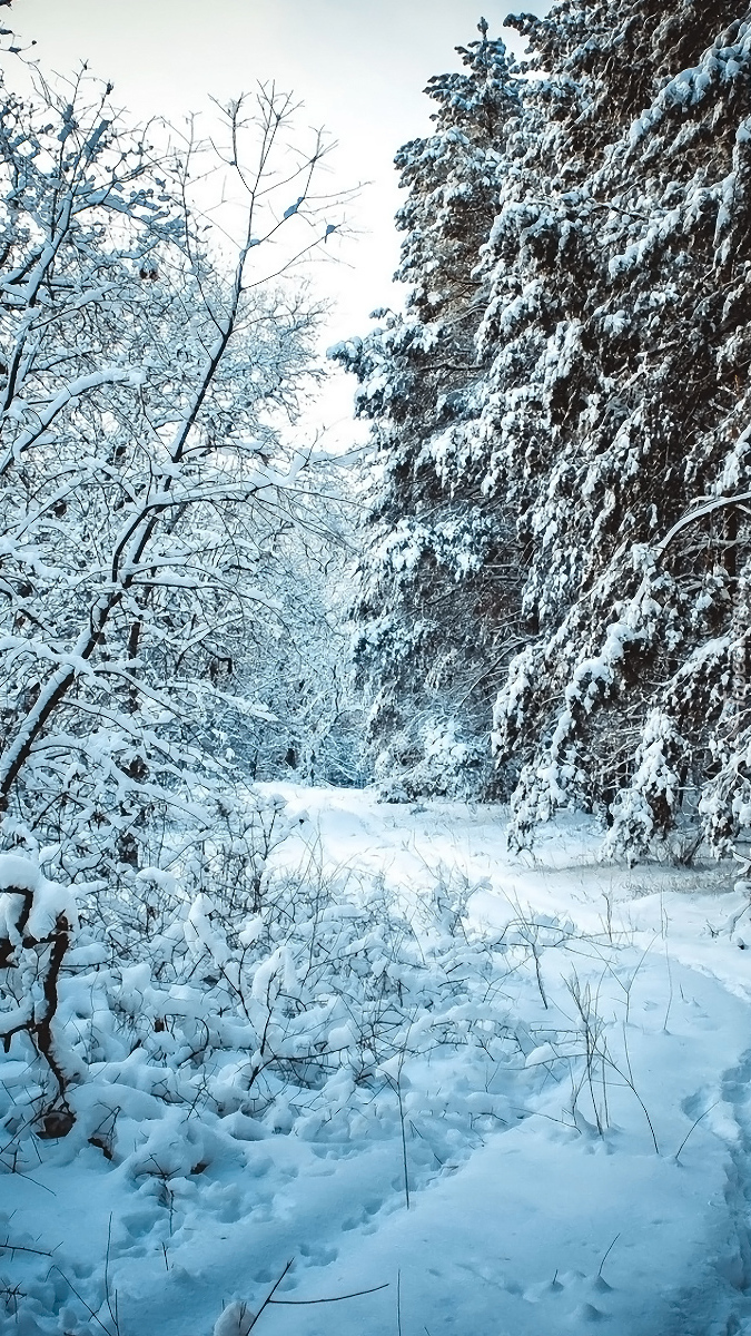 Edytor tapety: Zaśnieżona dróżka w lesie